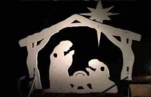 "I'm confused. Is this a nativity scene........or two T-Rex fighting over a table saw."