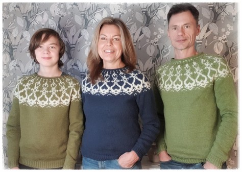 Me and my family in hand-knitted jumpers. My mother-in-law has knitted them, so she wanted us to take a picture.